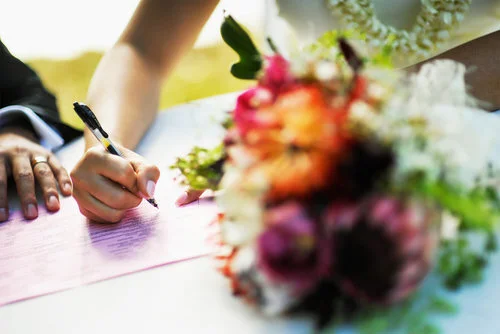 Love Notes: Sunset Ranch in the summer is always an amazing venue for a colorful tropical modern wedding.